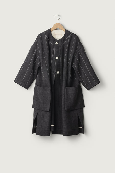 Coats and jackets hold a special place in the Jan Machenhauer universe. Since the beginning it has been the brand’s key item and the Jan Machenhauer studio is filled with Jan’s iconic pieces dating back to 1976 which serve as references for new designs. Sewn and tailored by hand in the studio, each coat is a distinguished and sculptural masterpiece.